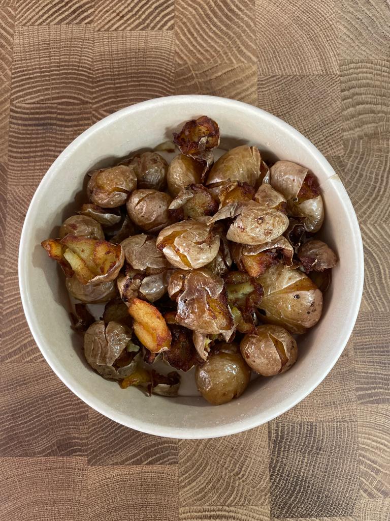 Steak, raclette cheese, onion confit, crème fraîche with smashed potatoes or green salad