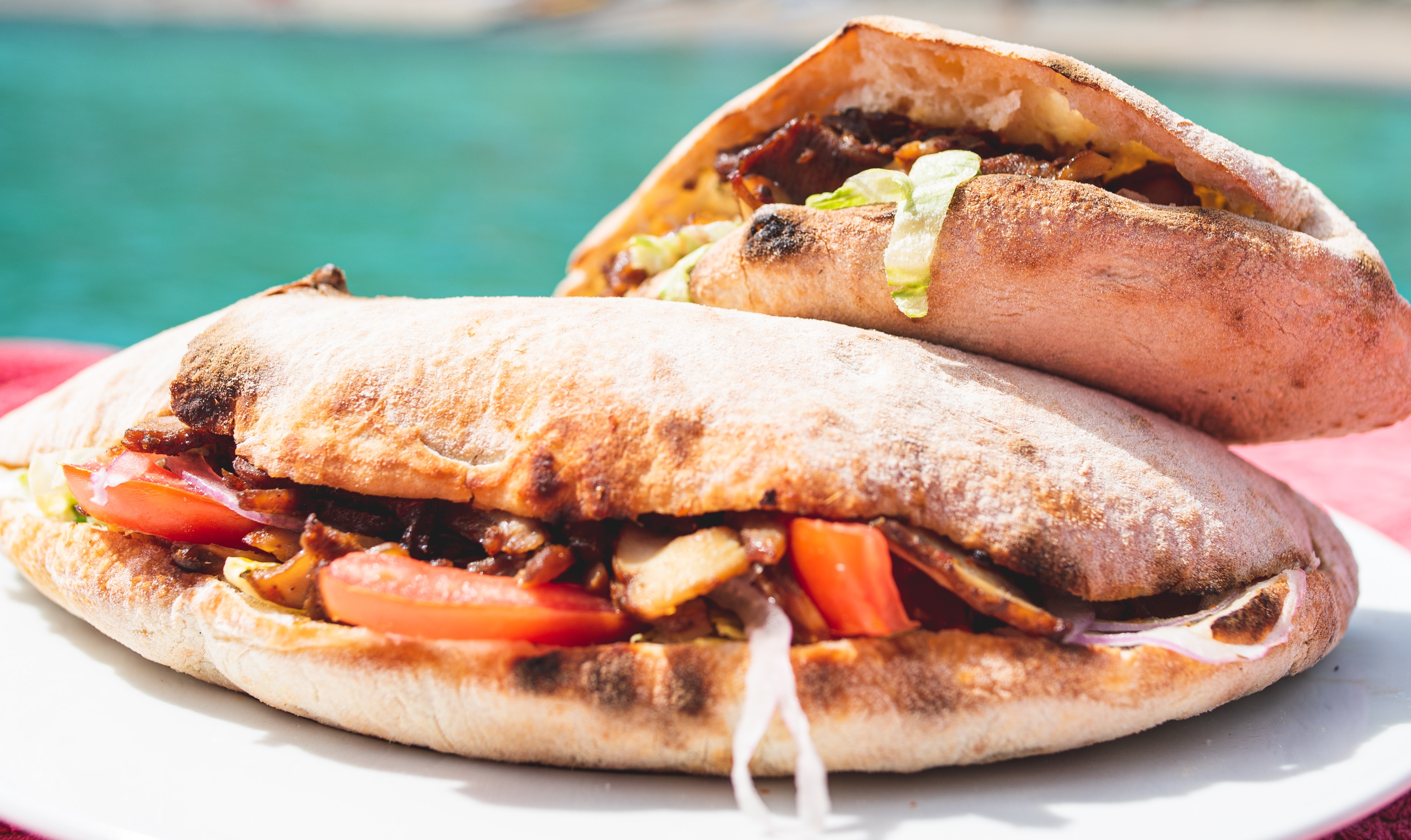 Chicken on the spit, salad, tomato, raw…