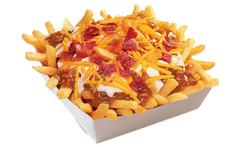 Steak, cheddar, bacon, salad, raw onion…